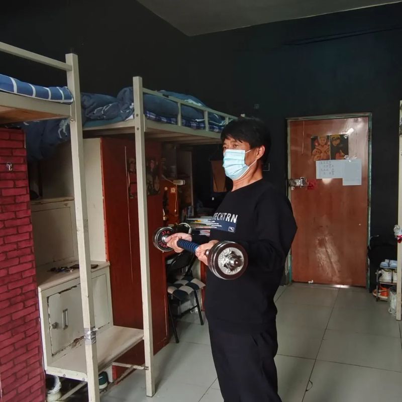 疫情还未结束,室内锻炼不能松懈。为提高自身免疫力,缓解长时间网课给同学们带来的颈椎以及背部的压力。bwin必赢男寝同学如火如荼的开展着体育健身运动,高铭彤辅导员和杨珉老师也来到寝室指导同学们寝室健身锻炼。