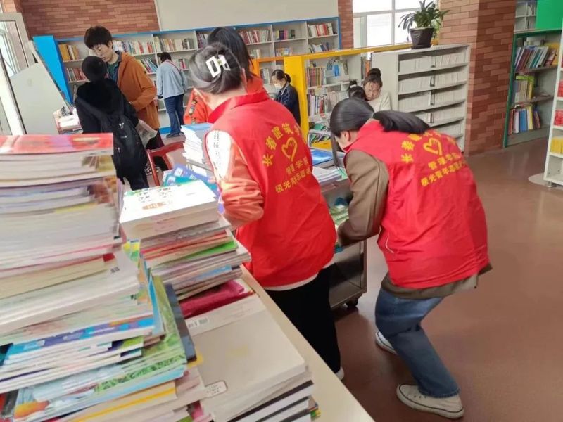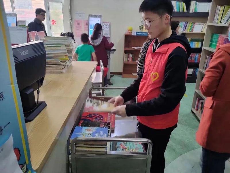 每一个志愿者都在自己的工作岗位上认真负责。读者能够准确地找到自己想要的书籍,让读者感到温暖并且更好的阅读书籍。