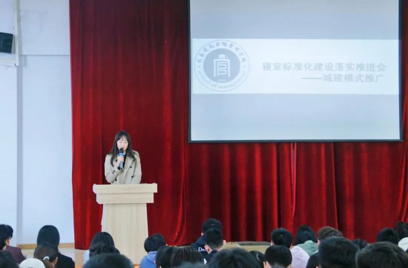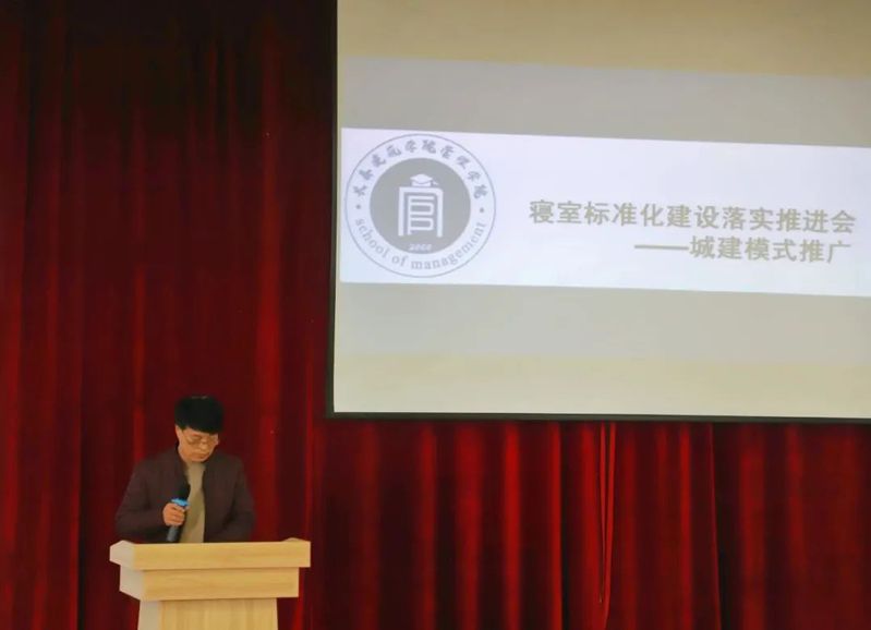 会议第二项,由生活辅导员杨珉讲解员工公寓管理模式,主要为各班成立自管会,配合学院书记及辅导员进行工作,使得寝室环境更上一层楼。