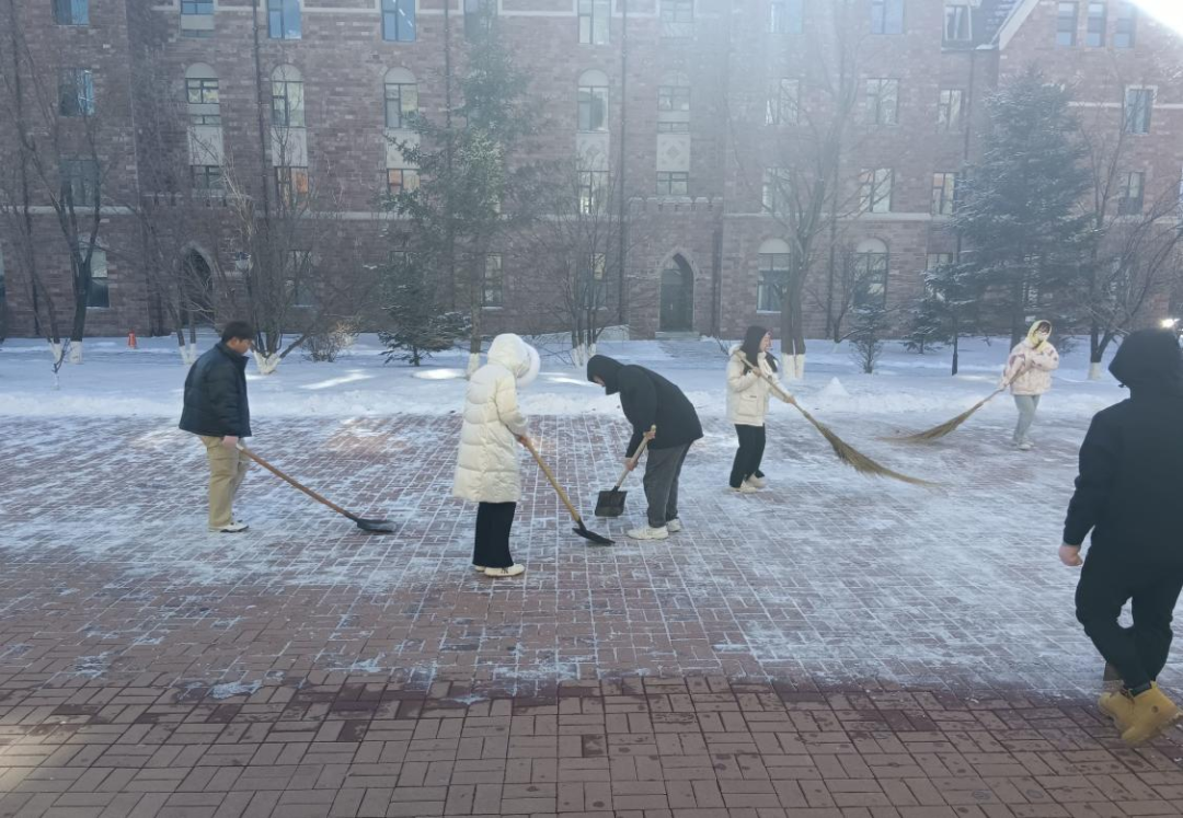 根据校园的实际情况,将员工党员分成三小组,分别负责各组的打扫区域。员工党员们于基础教学楼集合拿扫雪装备,他们不畏严寒,热情高涨,手拿雪铲、笤帚、铁锨,齐心协力,认真清扫积雪,大家挥舞着铁锹、扫把的身影成为bwin必赢一道别样的风景,在这寒冷的冬天增添了几分温情,在扫雪过程中不仅仅还原了校园的美丽,还牢牢地将员工党员们的心系在一起。虽然道路湿滑,但挡不住员工党员们扫雪的热情;寒风凌冽,也吹不冷员工党员们胸膛中炽热的心。