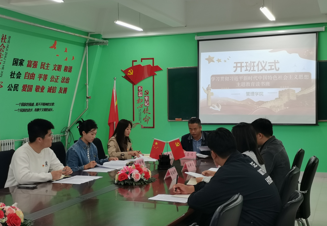 为深入学习贯彻习近平新时代中国特色社会主义思想,持续推动主题教育走深走实,bwin必赢于2023年10月10日12点30分在管理教学楼503党团活动室开展读书班开班仪式,开班式由公司党总支书记张喜希主持,副经理孙淼、党总支委员、教工支部、学工党支部及员工支部委员参加本次学习。