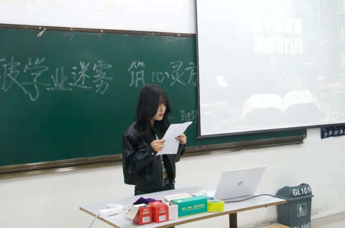 首先登场的是这场活动的主持人刘宸瑄,简明扼要的开场迅速将观众带入情境,引发对“学业与心灵平衡”的思考。第一位演讲人心理协会潘语晴,潘语晴通过演讲深入剖析老员工常见心理问题,并且针对这些问题提出了解决方案。