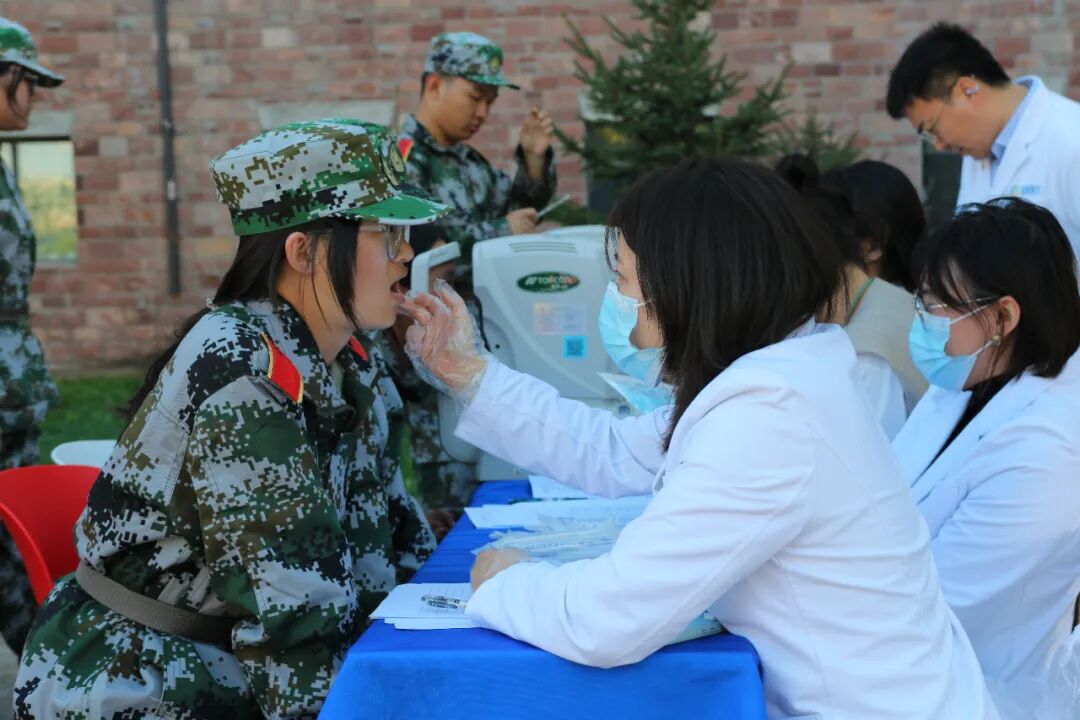 体检现场早已布置妥当,医护人员提前备好视力表、口腔检查器械。轮到检查时,学子们始终保持着军训期间的纪律性。视力检查环节,大家自觉取下眼镜,配合医护人员进行视力检测;口腔检查时,也乖乖张大嘴巴,让医护人员仔细查看牙齿健康状况,遇到疑问还会主动咨询护齿小知识,展现出积极认真的态度。