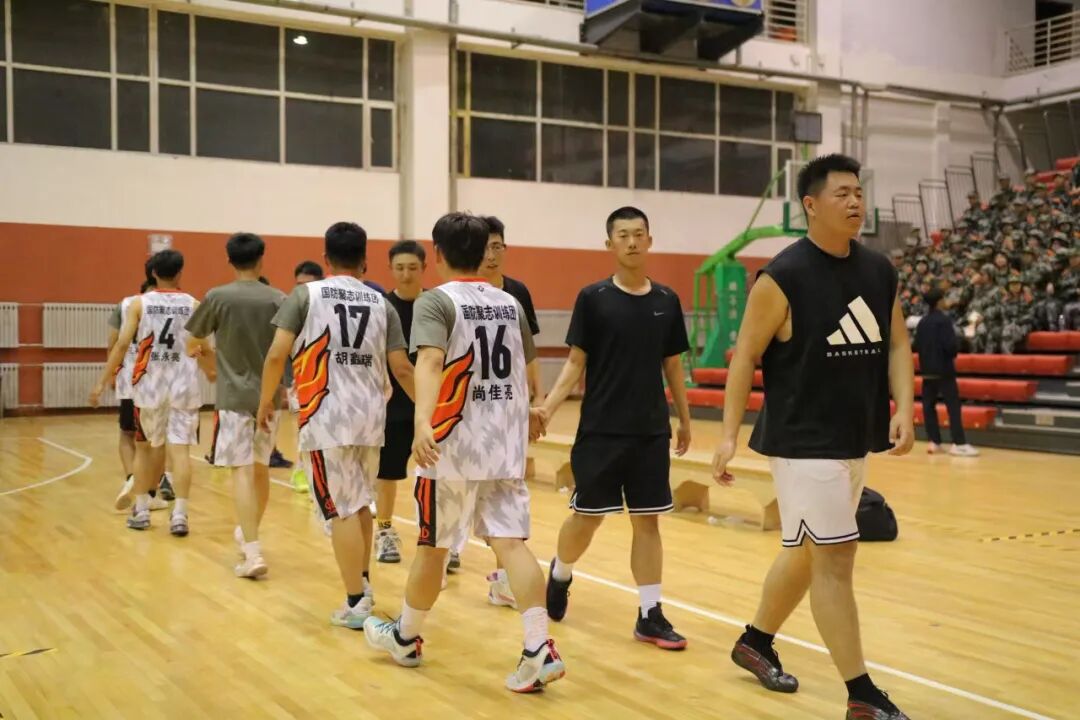 下半场,新生队调整策略,加强了防守,双方竞争愈发激烈,新生队队员们仿佛不知疲倦,每一次防守都全力以赴。教官队同样拿出了最佳状态,精准的三分球,让他们的进攻火力全开。在比赛还剩最后两分钟时,教官队仅领先新生队2分,现场气氛瞬间紧张到了极点。关键时刻,教官队凭借一次漂亮的快攻上篮,将分差再次拉开,最终以45:38的比分锁定胜局,由王帅团长带领的教官队伍获得胜利。