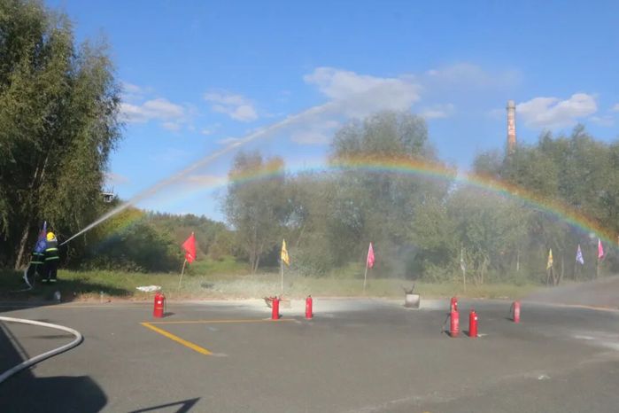 演练现场,消防员结合校园场景,用通俗语言讲解了火灾初期扑救要点、灭火器“提、拔、握、压”四步使用法,以及浓烟环境下低姿疏散、紧急避险的注意事项;随后新生分组实操,在消防员的指导下亲手操作灭火器扑灭模拟火点,全程动作规范、秩序井然,从“听理论”到“上手练”,切实掌握了基础消防技能。