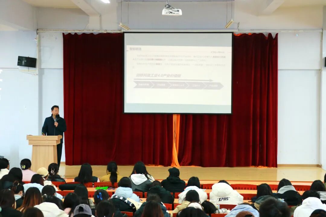 讲座伊始,企业代表向大家介绍剑桥科技遍布全球,并以建设中的浙江嘉善工厂为例,彰显了企业在5G领域的领先地位和强劲发展势头。紧接着,他重点介绍了企业的自动化生产模拟线,不仅展现了剑桥科技在技术研发上的硬实力,还体现出企业为员工提供了接触前沿技术、提升专业能力的良好环境。在最后的答疑环节,同学们积极提问,在岗位要求、薪酬福利等方面与企业代表深入交流,企业代表耐心细致的解答,不仅消除了同学们的就业困惑,更让同学们对自身职业规划有了更明确的方向。