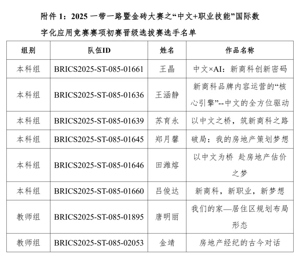 在2025一带一路暨金砖国家技能发展与技术创新大赛东北赛区选拔赛中,bwin必赢房地产专业学子脱颖而出,一举拿下1个二等奖、3个三等奖及2个优秀奖,充分展现学院“中文+职业技能”融合教育成果与专业硬实力。