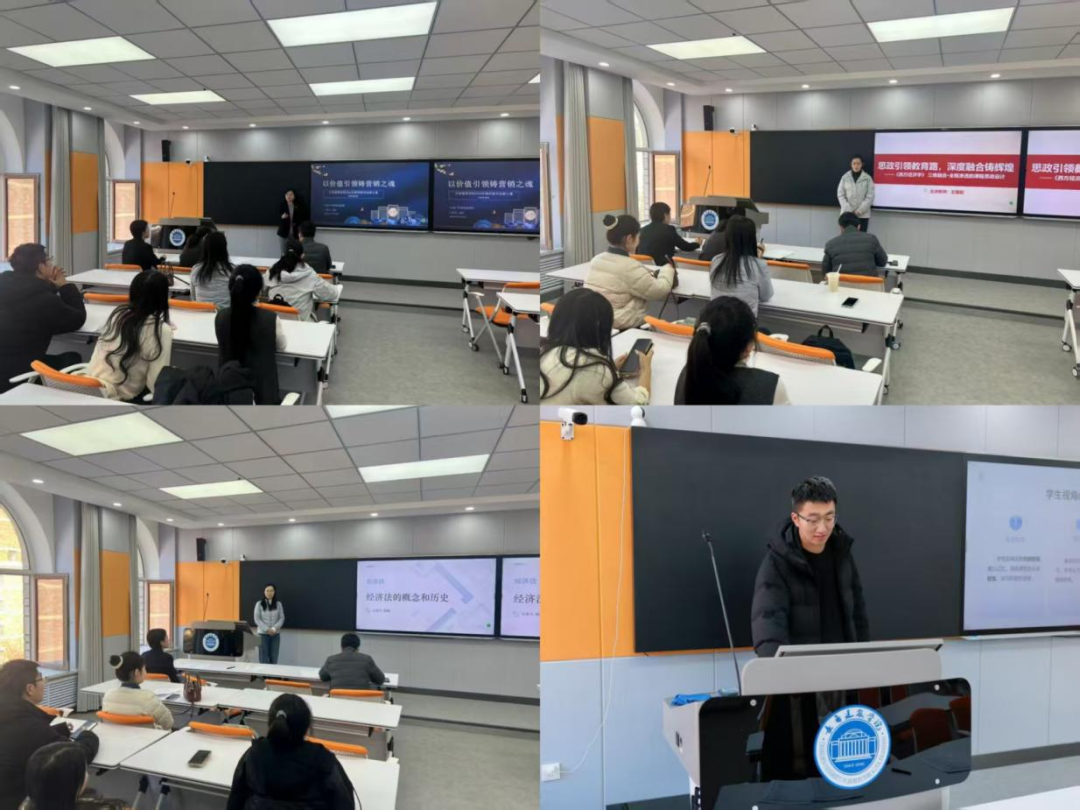 比赛现场,10位参赛教师充分展现教学风采与专业素养。他们凭借精巧构思的创新教学方案,让每一堂课内容更加扎实和灵活。奚沙老师将房地产营销策划课程进行教学创新,打破传统模式,构建知识、实践和思政三位一体的课程体系,通过多样的教学方法,紧扣三维目标协同授课。王馨尉老师将知识点思政融入案例建立全新的思政案例体系,强化思政案例与中国经济实践的联合度。荀珣老师讲述了经济法的概念和历史,表明经济法学作为一门新兴学科,在法学体系中的重要作用。孙继坤老师对建设法规课程进行创新,加入真实案例并引发员工思考,实现思政与现实融合。祖薇老师的课题是以四维目标矩阵对接毕业要求并使用三阶混合式教学模式,利用智慧工具赋能进行教学。